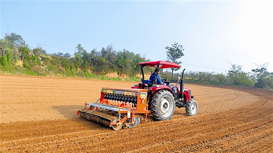 10月30日,湖滨区磁钟乡杨家窑村,村民利用晴好天气抢时播种冬小麦,田间地头一派繁忙景象。 尚栋 摄