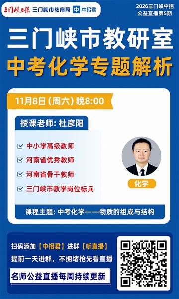 公益直播课每周一期,将针对中考各科重难点进行答疑解惑。各位老师、家长、学生可识别左下方二维码加“2026三门峡中招君”为好友,进群听课。本周六晚8:00,不见不散。 (本报记者)