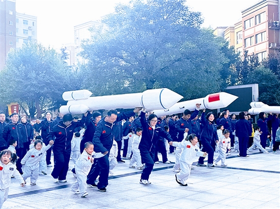 近日,湖滨区银昌路幼儿园召开秋季运动会,该园幼儿与家长携手参与,在“飞向太空、星球大战、外星飞碟”等项目中尽情奔跑,用笑声传递运动的快乐。 崔晓艳 摄