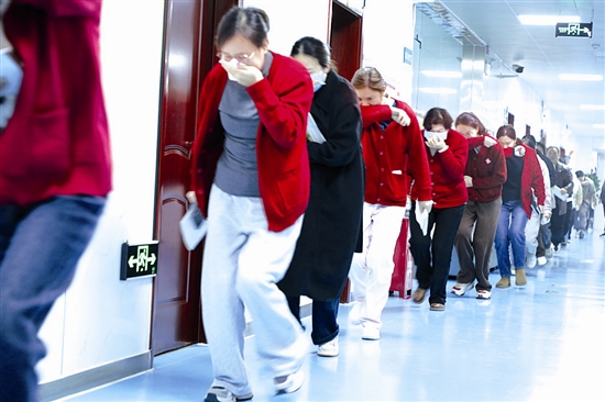 为增强全员消防安全意识,提升应急处置与逃生技能,三门峡市直机关医院于11月3日、4日下午,分批开展2025年下半年消防安全知识培训、灭火实地演练与应急疏散逃生演练,进一步筑牢医院安全生产防线,为保障医患安全奠定坚实基础。图为该院职工在专业人员指导下按预定路线“弯腰捂鼻、低姿前行、有序疏散”。 张婷 宋栋栋 摄