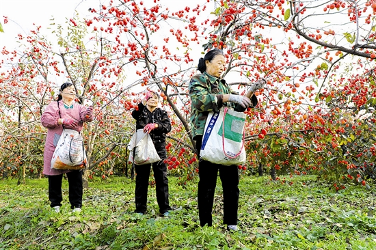 柿子丰收不仅让种植户的腰包鼓了起来,更给周边村民带来了“家门口”的就业岗位。该村70多岁的村民王阿姨正坐在树荫下麻利地分拣柿子,将大小均匀、品相完好的鲜柿装入专用筐里。“在果园干活离家近,每小时能挣10元,一天下来能有七八十元的收入,还能照顾家里。”王阿姨一边干活一边说。据了解,每到柿子采摘、分拣的农忙时节,王成弟都会优先雇佣村里的留守妇女、老年人等闲置劳动力,最多时一天能带动30余人就业,让乡亲们不用奔波就能实现稳定增收。
