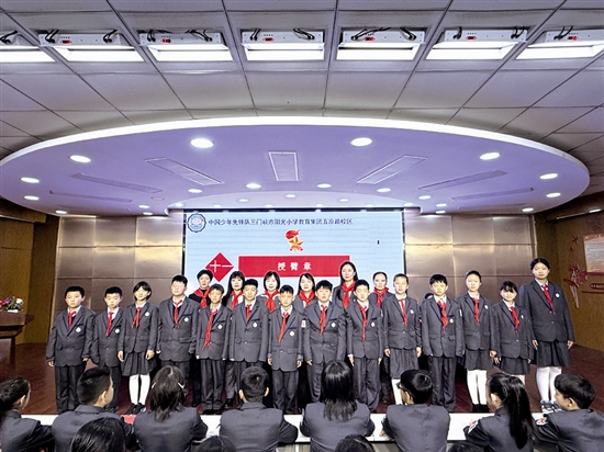 11月6日,三门峡市阳光小学教育集团五原路校区第五次少先队代表大会顺利召开。队员们身着整洁队服、精神饱满,围绕学校发展积极建言献策,以“小主人翁”的姿态畅所欲言,展现了新时代少年担当使命、昂扬向上的精神风貌。图为老师与新一批队员合影留念。 尚栋 摄