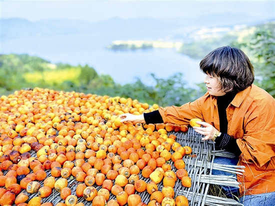 连日来,渑池县段村乡、南村乡等地农户摘柿、旋柿、晾柿一派繁忙。图为南村乡一家农业合作社社员在晾柿子。 王家臣 摄