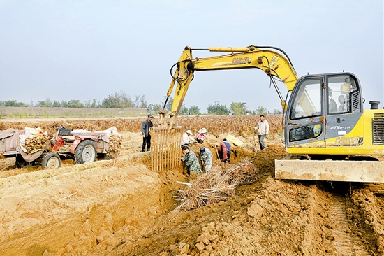 近日,湖滨区会兴街道西河底村的山药进入采摘季。田间地头,工作人员借助挖掘机高效作业,与人工协作挖掘,一根根粗壮的山药被采收整理销往全国各地。 本报记者 张明 摄