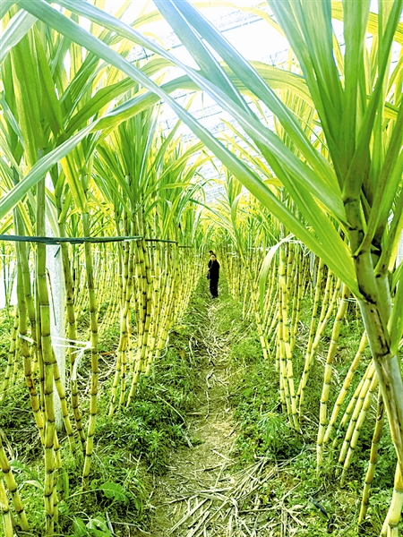 近年来,灵宝市焦村镇西常册村大力实施“三变改革”(即资源变资产、资金变股金、农民变股东),聚焦农产品种植、加工和电商销售,群众和村集体收入不断增加,乡村振兴步伐进一步加快。图为11月8日,该村甘蔗园里一片葱茏。 本报记者 何英杰 摄