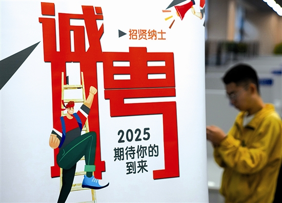 11月12日,一名求职者在招聘会上查看招聘信息。