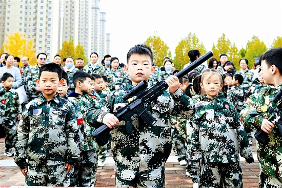 | 近日,明珠幼儿园周公路、文明路园区分别举办“童心向祖国 共筑强军梦”大型亲子运动会。全体教师、幼儿与家长身着迷彩戎装,共同参与这场融合国防教育和亲子互动的特色活动,为孩子们的童年增添爱国情怀。图为运动会现场。 贺金艳 孙二晓 摄 |