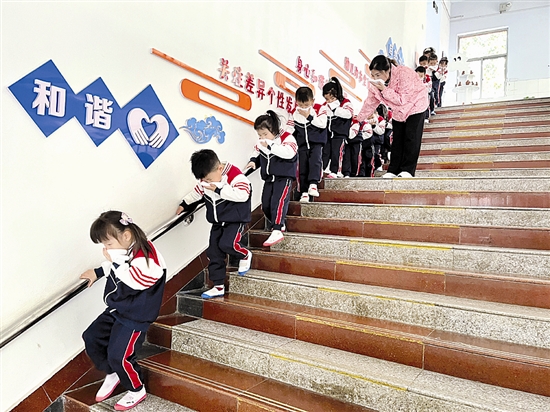 | 为切实加强幼儿园消防教育、筑牢安全“防火墙”,近日,陕州区实验幼儿园开展“消防安全教育”主题系列活动。通过主题绘画、消防故事演绎、参观消防救援大队等形式,为师生的安全、健康保驾护航。图为消防演练画面。 张娟丽 摄 |