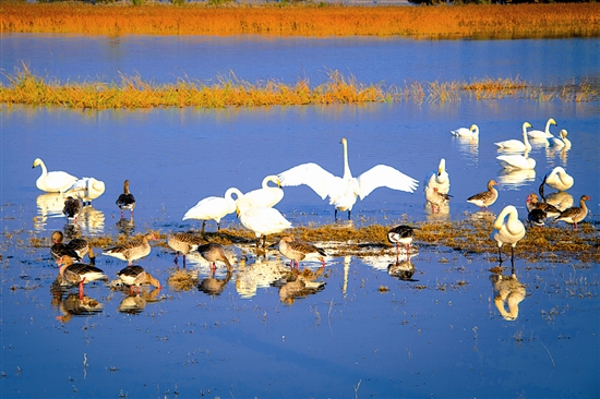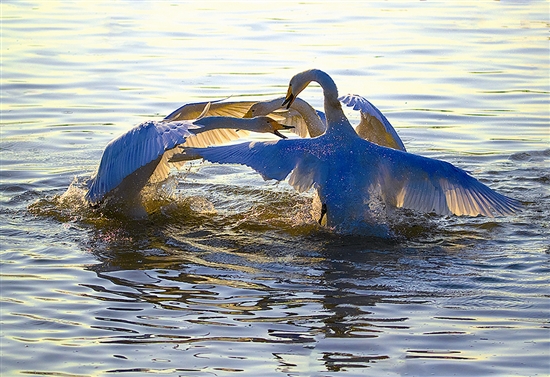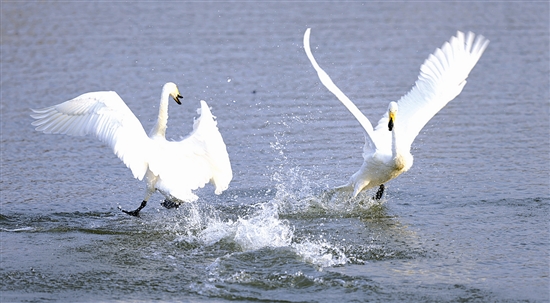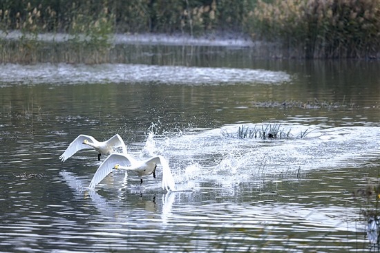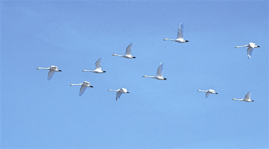 为迎接这些“冬日使者”的归来,我市相关部门早已做足准备,通过科学调控水位、优化植被等举措,不断提高栖息环境的舒适度。白天鹅抵达后,巡护队员更是日夜守护在各栖息点,细心观察着它们的活动状况,确保这些“老朋友”能够安然越冬。