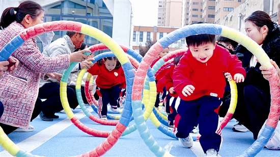 11月11日,三门峡市实验幼儿园复兴园举行“我是挑战小主人”阳光秋季运动会。根据小、中、大班幼儿的年龄特点和运动发展水平,设置了不同难度的挑战项目,孩子们可以自主选择、尝试挑战,培养他们独立、自主、勇敢、坚持的良好品质。 本报记者 孙猛 摄
