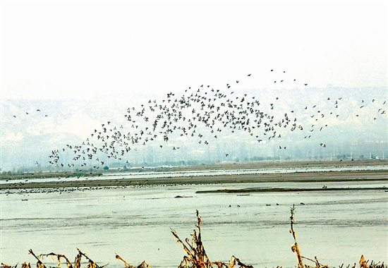 连日来,在黄河灵宝市西阎乡段,成千上万只绿翅鸭或展翅翱翔,或栖息嬉戏,构成一幅绝美的冬日画卷。 本报记者 何英杰 摄