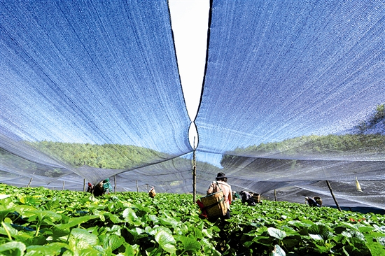 云南省保山市地处高黎贡山区域,当地自然条件适宜山葵生长。近年来,当地政府着力推进山葵标准化、规模化种植,为山区创造产业发展机遇,助力农民增收。目前,保山市已成为国内最大的山葵种植区,产品在国内市场销售份额逐年上涨,还出口至日本、韩国及东南亚国家,发展前景广阔。 新华社记者 高咏薇 摄