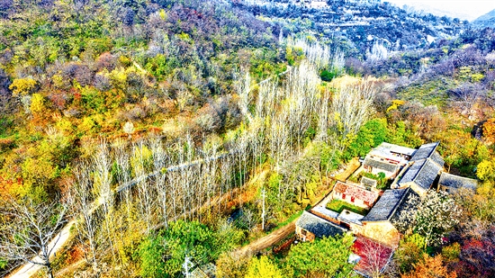 11月16日,在灵宝市五亩乡马河村,田垄叠金,农舍映枫红,炊烟缠薄雾,一幅乡村初冬图卷正徐徐展开。 谢小涛 摄