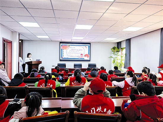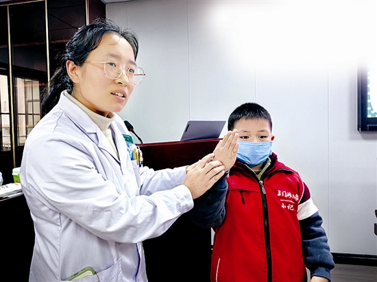 为培养小记者的健康意识和社会责任感,11月22日,三门峡日报小记者中心组织小记者走进市中心医院开发区分院,开启“健康小卫士”养成之旅。活动中,专业医师围绕流感预防知识进行科普,细致讲解流感的传播途径、防控方法,并带领小记者认识养生保健穴位。图①为认识养生保健穴位。图②为科普预防流感知识。 程倩 摄
