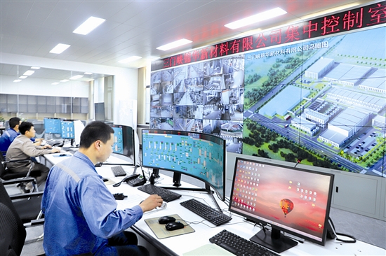 位于市城乡一体化示范区(高新区)的三门峡锦华新材料有限公司稀有金属资源综合回收利用项目总投资12亿元,分两期建设,一期建设年产1万吨电池级碳酸锂生产线,二期建设年产25万吨高白氢氧化铝生产线。截至目前,年产1万吨电池级碳酸锂生产线已建成投产。图为日前在该企业控制室,工作人员通过大屏幕监控数据,助力企业生产。 本报记者 徐洪波 摄