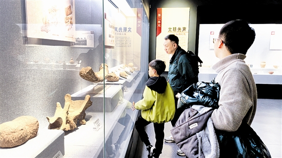11月23日,游客在三门峡市博物馆近距离观赏文物,在与古老文明的对话中,深刻感受三门峡深厚的文化底蕴与独特魅力。 尚栋 摄
