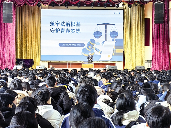 近日,灵宝市法院刑事审判庭将庭审现场“搬”进灵宝市中等专业学校,公开审理一起盗窃罪案件。通过以案释法的形式,为2200余名师生带来了一堂别开生面的法治公开课,让广大师生“沉浸式”体验庭审、“零距离”感受法律威严,树立守法意识。 赵一帆 摄