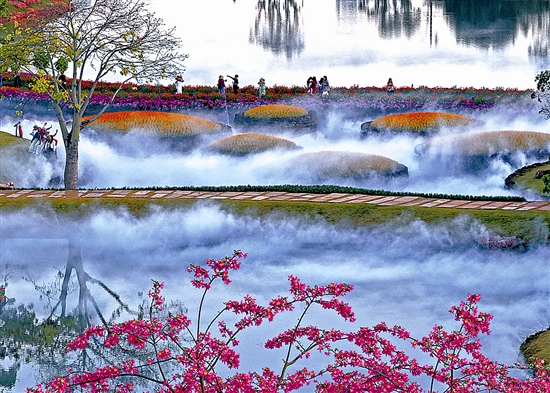 连日来,广西南宁市迎来晴好天气。冬日暖阳下,南宁市青秀山风景区丘石花园内盛开的鲜花格外艳丽。 新华社记者 周华 摄