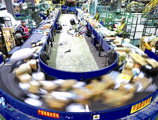 记者12月1日从国家邮政局获悉,国家邮政局监测数据显示,截至2025年11月30日,我国快递年业务量首次突破1800亿件。 新华社发