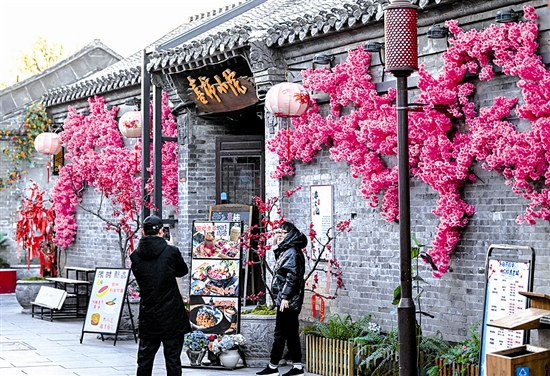 冬日里,天津杨柳青古镇古韵悠长。游客漫步古运河畔,逛古镇、赏非遗,尽享慢时光。 新华社记者 赵子硕 摄