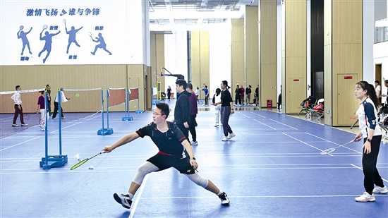 12月2日,三门峡职工之家的羽毛球馆内热闹非凡,市民正挥拍激战,享受运动带来的快乐。三门峡职工之家作为集健身、服务、文化于一体的综合性场所,每周二开放日提供的免费场馆预约、劳模刷脸进馆等公益服务广受好评。 尚栋 摄
