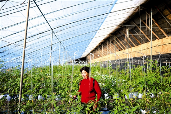 近期,陕州区西张村镇大安头村蔬菜大棚内,工作人员为果蔬进行人工授粉。通过精准操作,有效提升果实品相与口感,为特色蔬菜产业提质、稳定“菜篮子”供应筑牢基础。 本报记者 张明 摄