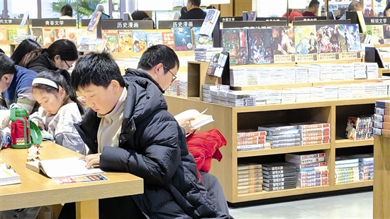12月14日,在三门峡市区梦之城商场的一家书店内,不少市民驻足其间,或手捧书卷沉浸书香,或细心挑选喜爱读物,在缕缕墨香里放松身心。 尚栋 摄