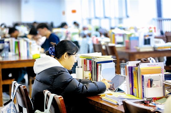 12月9日,三门峡职业技术学院图书馆里,学生们在沉浸式阅读学习。