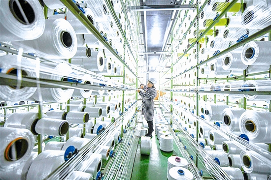 12月16日,工人在河北省遵化市西下营满族乡高强化纤有限公司车间工作。