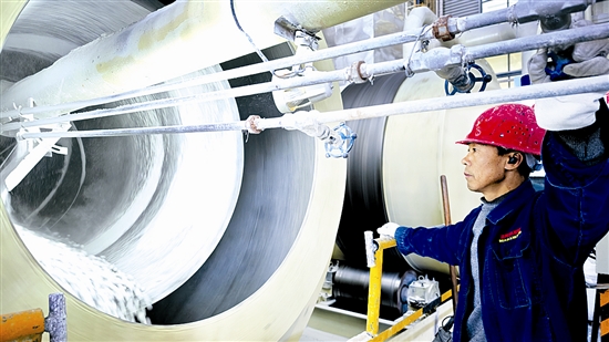 四季度以来,位于渑池县先进制造业开发区的三门峡星源新材料有限公司开足马力赶订单,奋力冲刺全年营收目标。图为近日,该公司工人正在操控成球机,赶制订单产品。 本报记者 王超 摄
