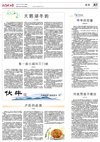 踩着晨霜踱入北大门,内外立柱上镌刻的楹联引人注目:“裁半段柔纱,半片云,浮水三分雪;沁一波倩影,一涟韵,鸣声十里幽。”“无惧千山万水,一路高歌,坚心回故地;何忧雪地冰天,双姿美舞,放意秀亲情。”生灵的执着与缱绻,借联墨韵律缓缓道来。