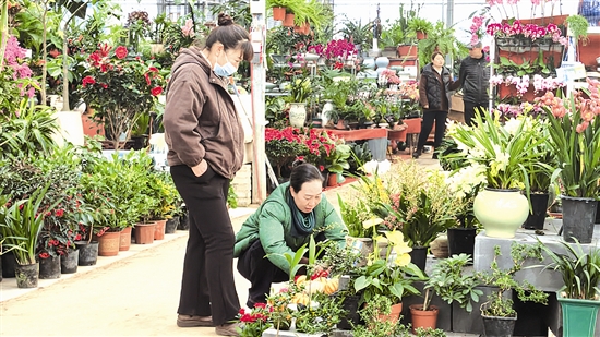 随着元旦日益临近,三门峡市各大花卉市场迎来销售旺季。蝴蝶兰、长寿花、水仙等花卉盆栽备受青睐,成为市民装点家居、传递祝福的热门选择。图为12月19日,在湖滨区岗上花卉市场,市民在精心挑选花卉。 尚栋 摄