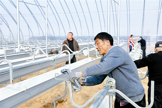 12月19日,湖滨区崖底街道陈宋坡村,工作人员正加紧安装新型草莓立体种植装备。此举将有效扩大草莓种植面积,提升果品产量,为当地特色农业发展、群众增收致富注入新动能。 本报记者 张明 摄