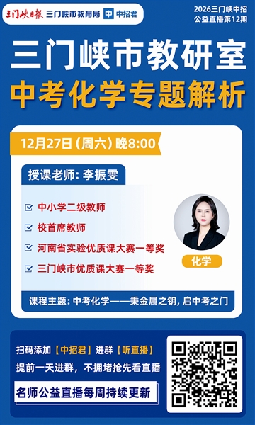 公益直播课每周一期,将针对中考各科重难点进行答疑解惑。各位老师、家长、学生可识别左下方二维码加“2026三门峡中招君”为好友,进群听课。本周六晚8:00,不见不散。 (本报记者)