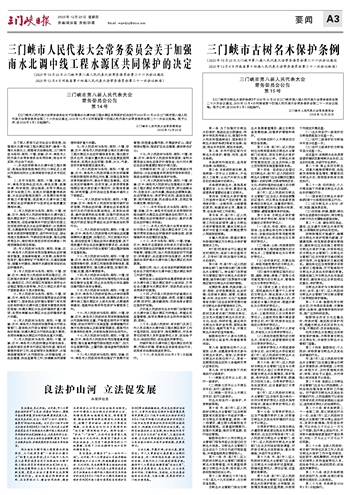 三门峡市人民代表大会常务委员会关于加强南水北调中线工程水源区共同保护的决定