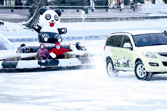 12月25日,人们在2026第八届哈尔滨松花江冰雪嘉年华园区内体验冰雪娱乐项目。