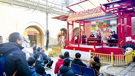 12月27日,陕州地坑院景区内,游客正在观看陕州锣鼓书展演,沉浸式感受中国优秀传统文化的独特魅力。凛凛冬日里,三门峡旅游市场持续升温,尽显冬日文旅的别样风采。 尚栋 摄