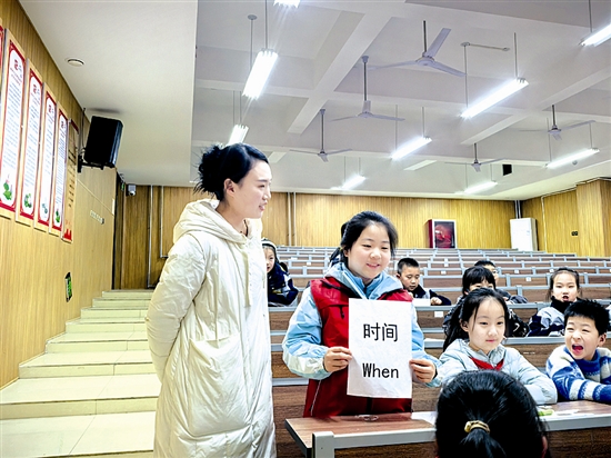 12月22日,三门峡日报小记者中心老师走进三门峡市伯阳学校,为新一批小记者带来生动有趣的新闻课,助力小记者增进对记者职业的理解与认识。图为学生在课堂上与老师积极互动。赵雪 摄