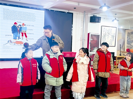 1月10日,三门峡日报小记者中心联合三门峡职业技术学院图书馆(市图书馆)举办英语绘本故事阅读活动,通过生动有趣的讲解,让小记者在“玩中学、学中乐”,激发大家的学习兴趣。图为老师带领小记者一起玩游戏。 尚栋 摄