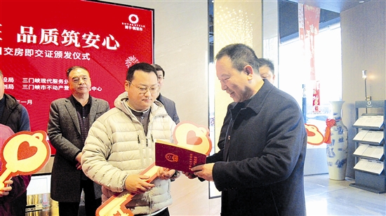 本报讯(记者汪潭 通讯员师桂芳)1月9日上午,由市住房城乡建设局、三门峡现代服务业开发区、市自然资源和规划局、市不动产登记和交易中心主办,三门峡博丰置业有限公司承办的“交房即交证 品质筑安心”活动在博丰·悦玺台项目现场举行。