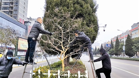 连日来,三门峡市园林绿化服务中心工作人员抢抓有利时机,开展冬季绿化树木修剪作业,为树木“减负”,促春枝萌发,保障树木健康生长同时令城市绿化景观更显整洁美观。 本报记者 单义杰 摄