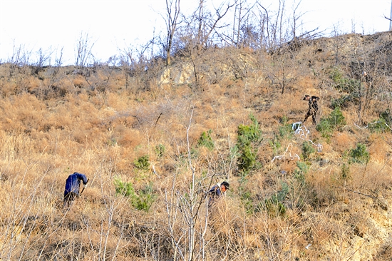 连日来,该区利用冬季种植时机,组织相关部门在辖区荒山土岭及边坡地带种植白皮松等常绿树木,进一步改善生态环境。本报记者 徐洪波 摄