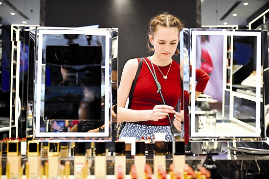 1月10日,顾客在海南三亚国际免税城购物。