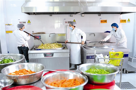 如今,学校建立了全流程管理制度,每个环节都有专人负责,工作人员也全部从学生家长中聘用。餐厅后厨清洗、消毒、烹饪设备一应俱全,“明厨亮灶”让食材处理、加工全过程透明可监督,保障滩区娃健康成长。 新华社记者 朱峥 摄