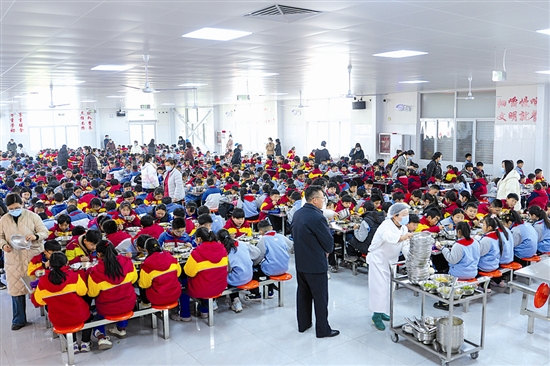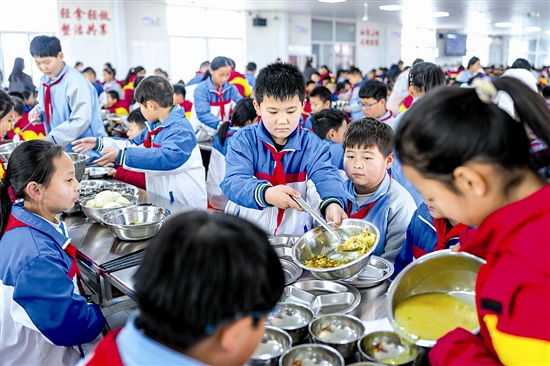 山东省东平县戴庙镇中心小学是一所辐射10个行政村的联合小学,623名学生主要来自东平湖滞洪区和黄河滩区。为解决孩子们午餐难题,2025年,当地相关部门积极对接中国社会福利基金会“免费午餐”项目,并投资近百万元,对学校餐厅进行升级改造,按每人每餐6元菜金标准为学生提供免费午餐。