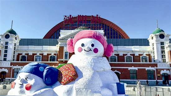 冰雪季到来,一些造型别致的雪人亮相沈阳火车站广场、商业步行街等地,成为寒冷季节里的文旅符号,吸引市民、游客驻足打卡。 新华社记者 吴青昊 摄