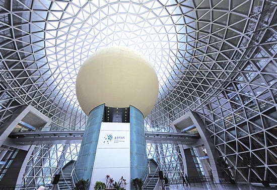 1月27日拍摄的上海科技馆内的四维影院(中)外景。