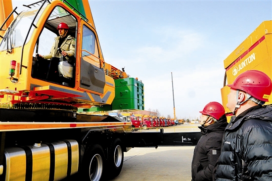 1月28日,在位于陕州区的河南骏通车辆有限公司试验场内,俄罗斯采购商对订购的15台70吨级汽车起重机开展各项工艺参数实测验收。截至目前,已完成测试的6台设备性能表现优异,获得俄罗斯采购商的高度认可与肯定。 本报记者 王建栋 摄