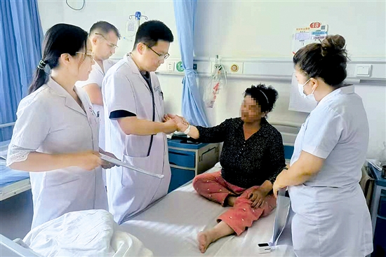 在临床诊疗中,贠富圆充分发挥中医辨证施治的优势,用精湛医术为边疆患者解除病痛。一位带状疱疹患者,皮肤遗留麻木疼痛症状已有10余年,严重影响睡眠和情绪,甚至出现焦虑抑郁。贠富圆结合既往病案经验,精准辨证后选用五苓散治疗,仅一周后患者症状便明显改善,后续多次复诊巩固疗效,患者对他的医术赞不绝口。另有一位病房患者彻夜难眠,起初按更年期相关证候论治效果不佳,他再次细致辨证,发现患者口唇紫暗、舌下静脉瘀黑,遂调整治疗方案,短短几天便让患者睡眠得到明显改善。