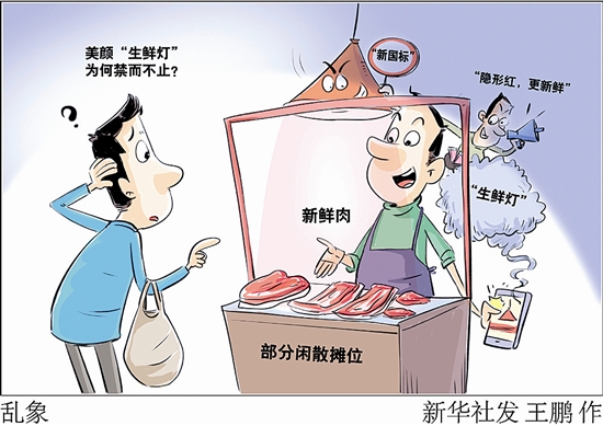 如今,新规施行逾两年,“新华视点”记者走访调查发现,在一些地方部分农贸市场和非固定摊位,“生鲜灯”仍有使用。